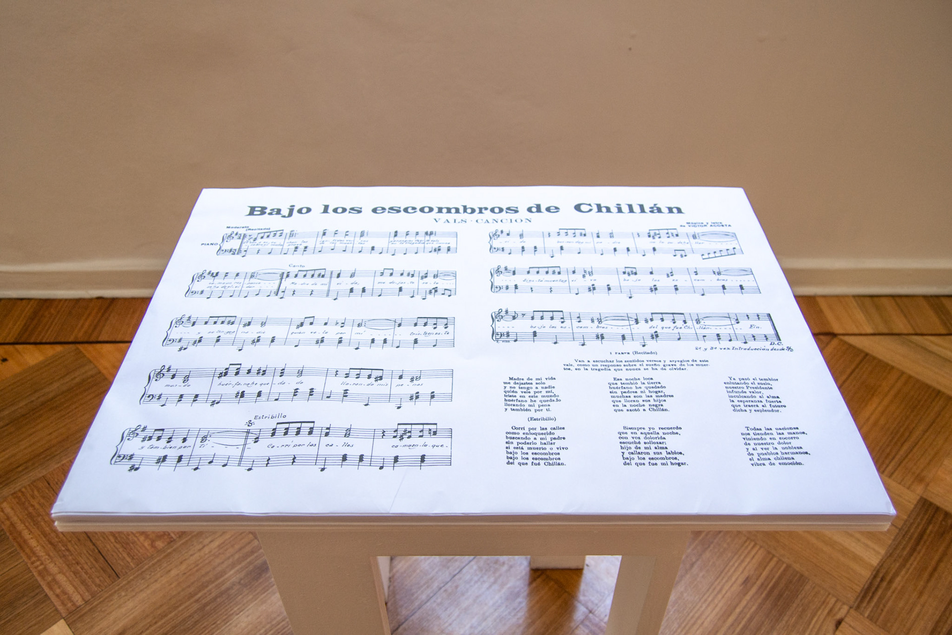 Gracias a esta exposición, tuve oportunidad de editar un video que tenía olvidado: "Para no olvidar el terremoto del 39" (2013 - 2022). Video registro de una intervención en el espacio público de Chillán con partituras de Víctor Acosta: “Bajo los escombros de Chillán” (1939). El sonido del video ha sido ejecutado por: Christian Álvarez Rojas.